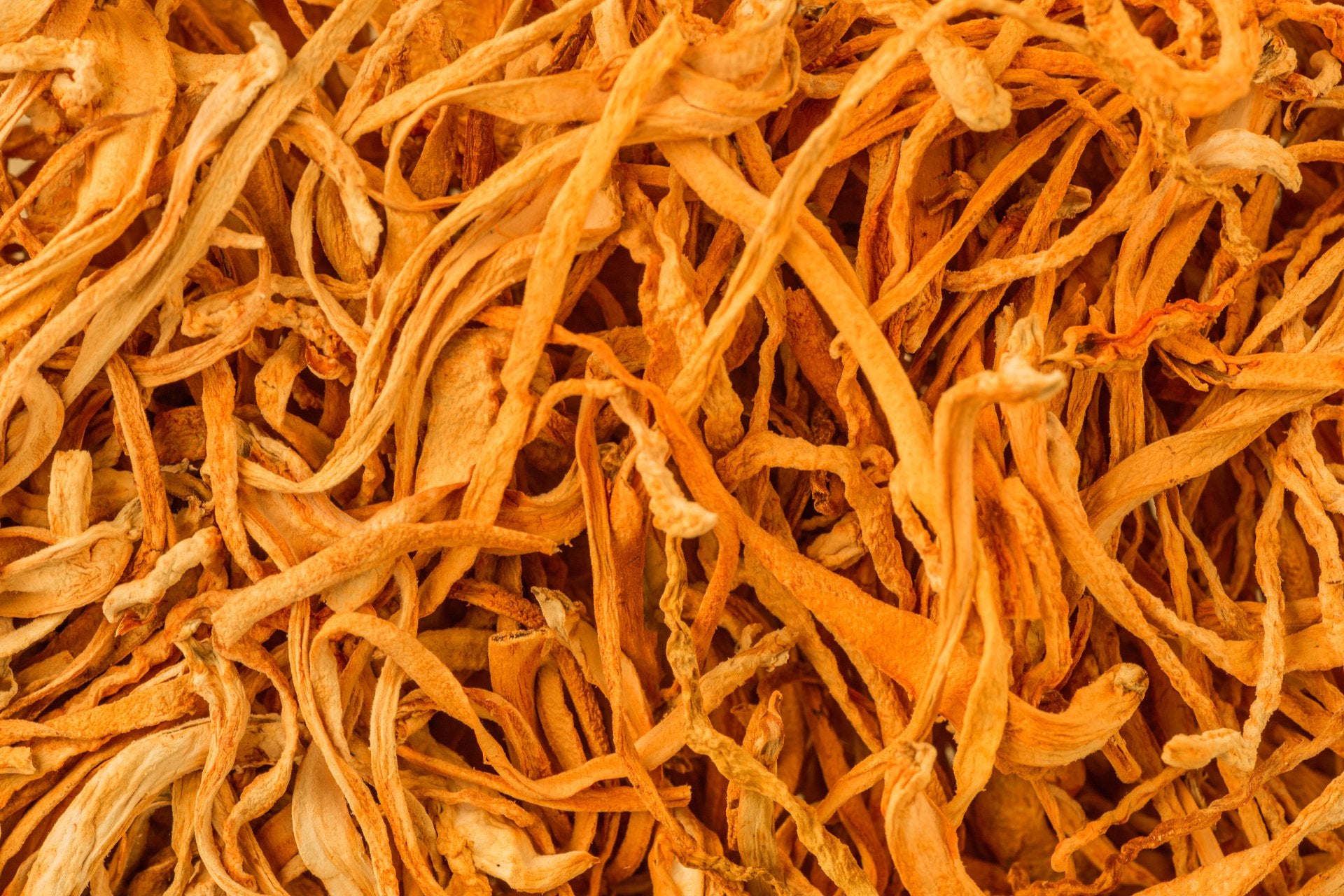 Wild Cordyceps sinensis was originally found in the Himalayas, growing on caterpillar larvae, making it extremely rare. Today, supplements are made from Cordyceps militaris (cultivated from fruiting bodies) and Cordyceps sinensis from mycelium. Militaris is available only outside the EU, while Sinensis is widely available worldwide.