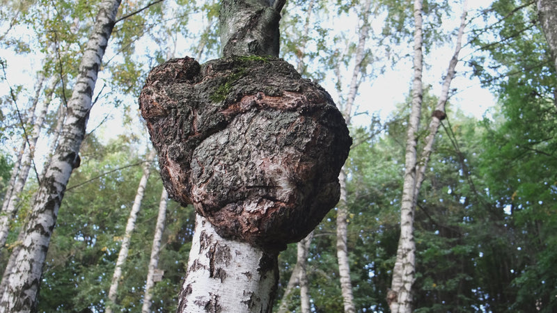 Chaga grows mainly on birch trees in cold climates such as Siberia, Scandinavia, and Northern Canada. Its charcoal-like exterior hides a golden interior rich in polyphenols and beta-glucans.